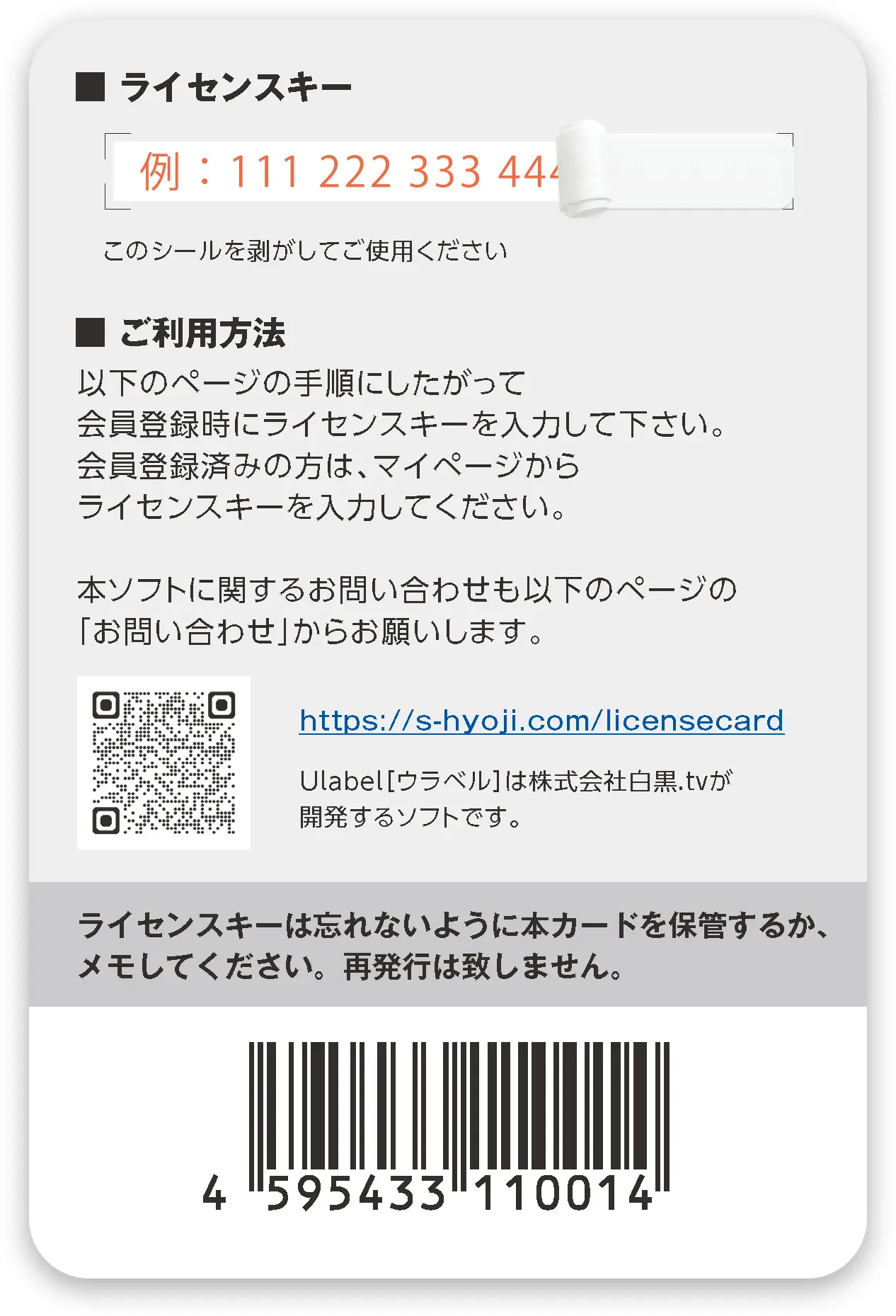2. 裏面の「ライセンスキー」を確認